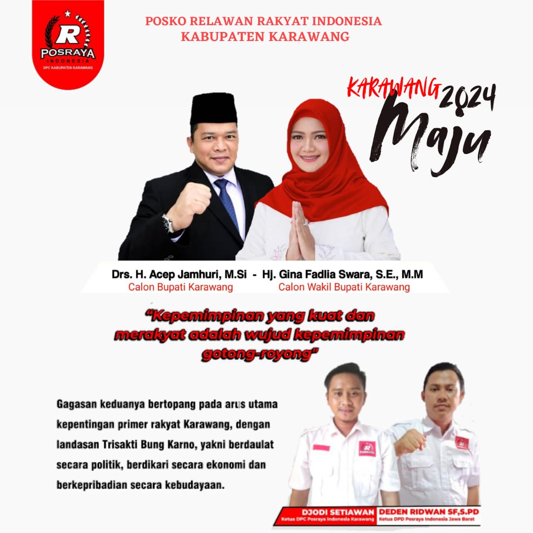 Karawang– Posko relawan rakyat (Posraya) Indonesia sekaligus Tim 7 Jokowi wilayah Kabupaten Karawang secara resmi dukung pasangan calon (Paslon) Drs. H. Acep Jamhuri.,M.si (Ajam)-Gina Fadlia Swara., S.E.,MM.
