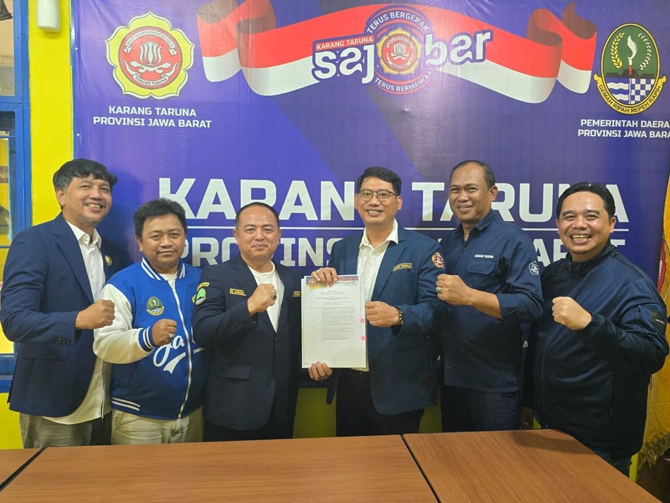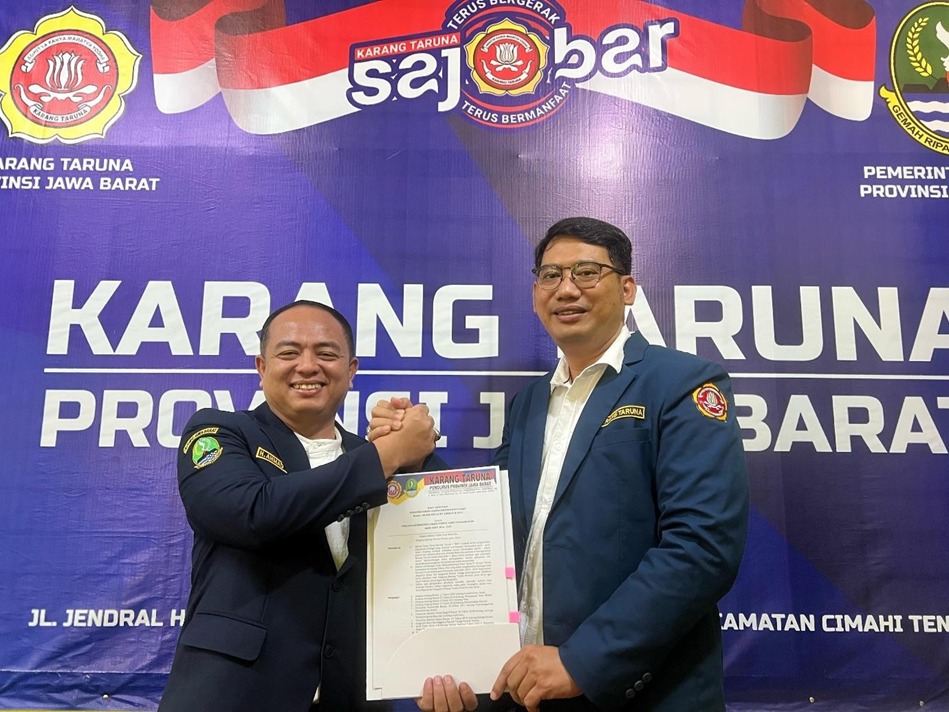Cimahi – Ketua Pengurus Karang Taruna Provinsi Jawa Barat, H. Ahmad Taufik, S.Pd.I., M.M., beserta Sekretaris Karang Taruna Provinsi Jawa Barat, Heri Susanto, S.E., M.M., menyerahkan Surat Keputusan Pengurus Karang Taruna Provinsi Jawa Barat Nomor: 08.008/KEP/11/KT-JABAR/E/II/2025 tentang Pengesahan Pengurus Karang Taruna Kabupaten Karawang Masa Bakti 2024-2029.