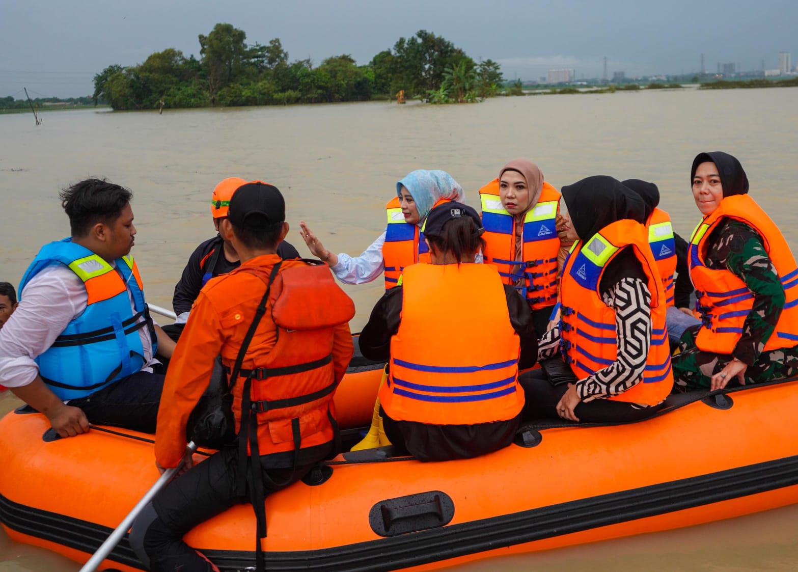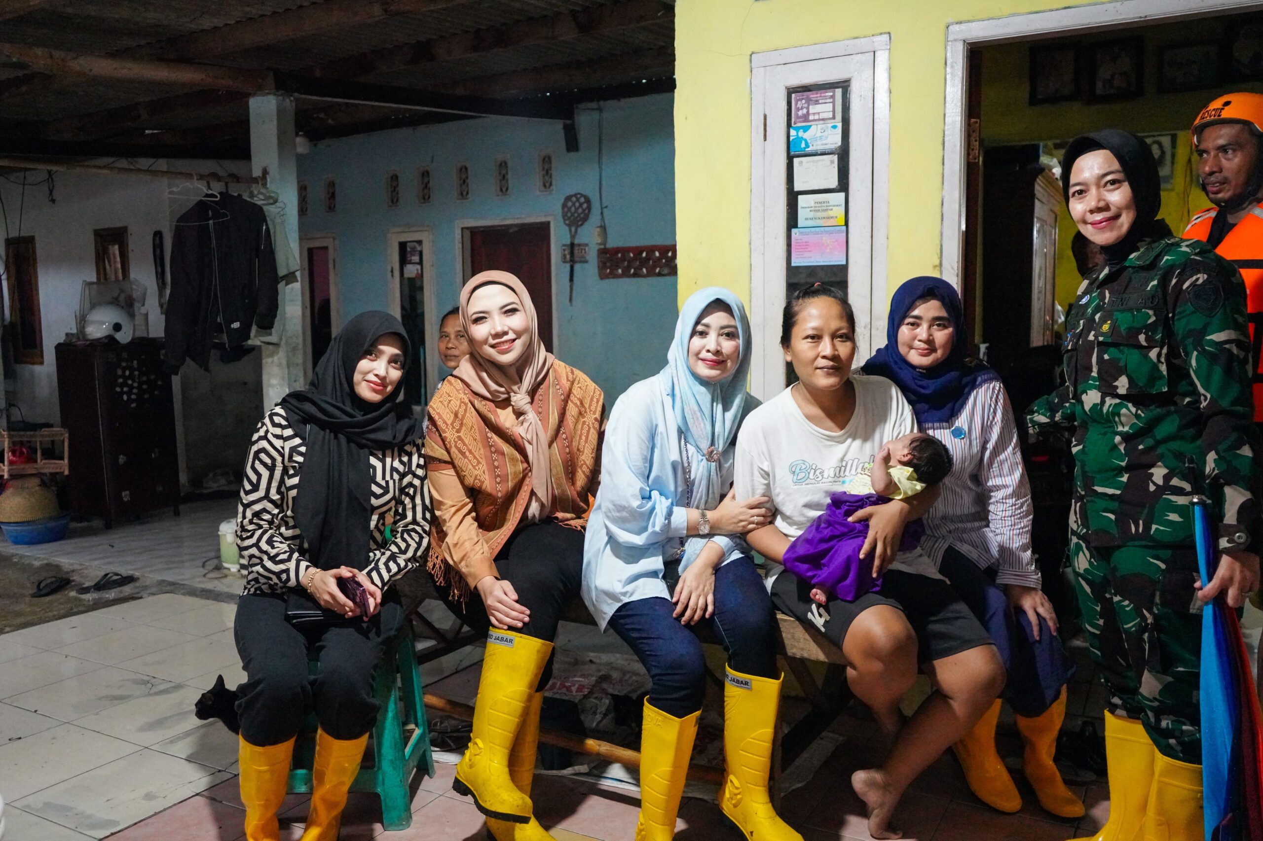 Ibu-ibu Forkopimda, yang terdiri dari Ibu Vida Rosdiyanti , istri Bupati Karawang, dan Ibu Henty Hermawan, istri Dandim 0604/Karawang, melakukan kunjungan ke dusun Tegal Luhur, yang dilanda banjir.
