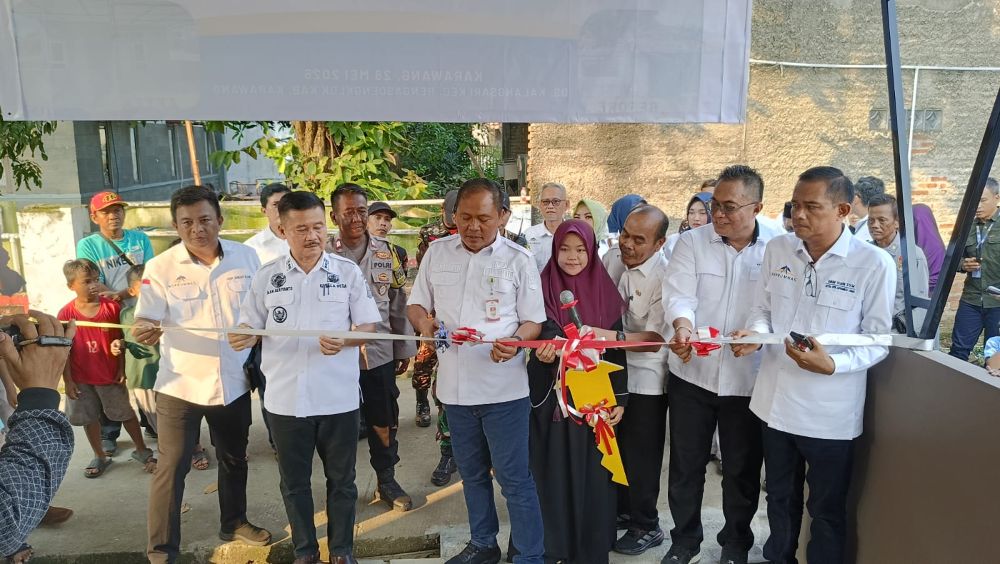 Kegiatan ditutup dengan prosesi pemotongan tumpeng sebagai simbol rasa syukur, diikuti dengan serah terima kunci rumah dan gunting pita secara simbolis oleh Wakil Bupati Karawang, H. Maslani. (red).
