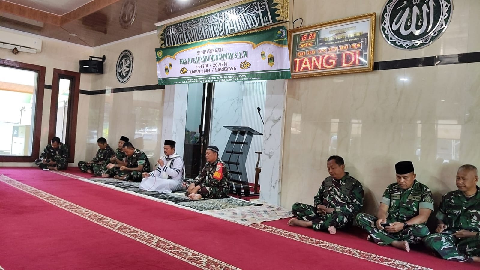 KARAWANG, Editorial.co.id – Keluarga besar Kodim 0604/Karawang menggelar peringatan Isra Mi’raj Nabi Muhammad SAW di Masjid Darul Muttaqien, Makodim Karawang. Senin (19/1/2026).