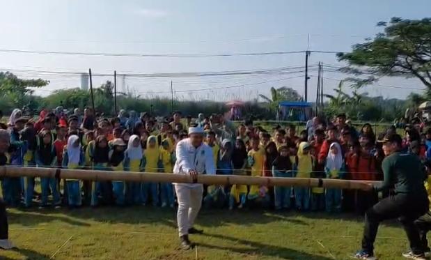 CIKAMPEK – Suasana Lapangan GAREPA Desa Dawuan Barat mendadak riuh dengan sorak-sorai ratusan pelajar sekolah dasar.